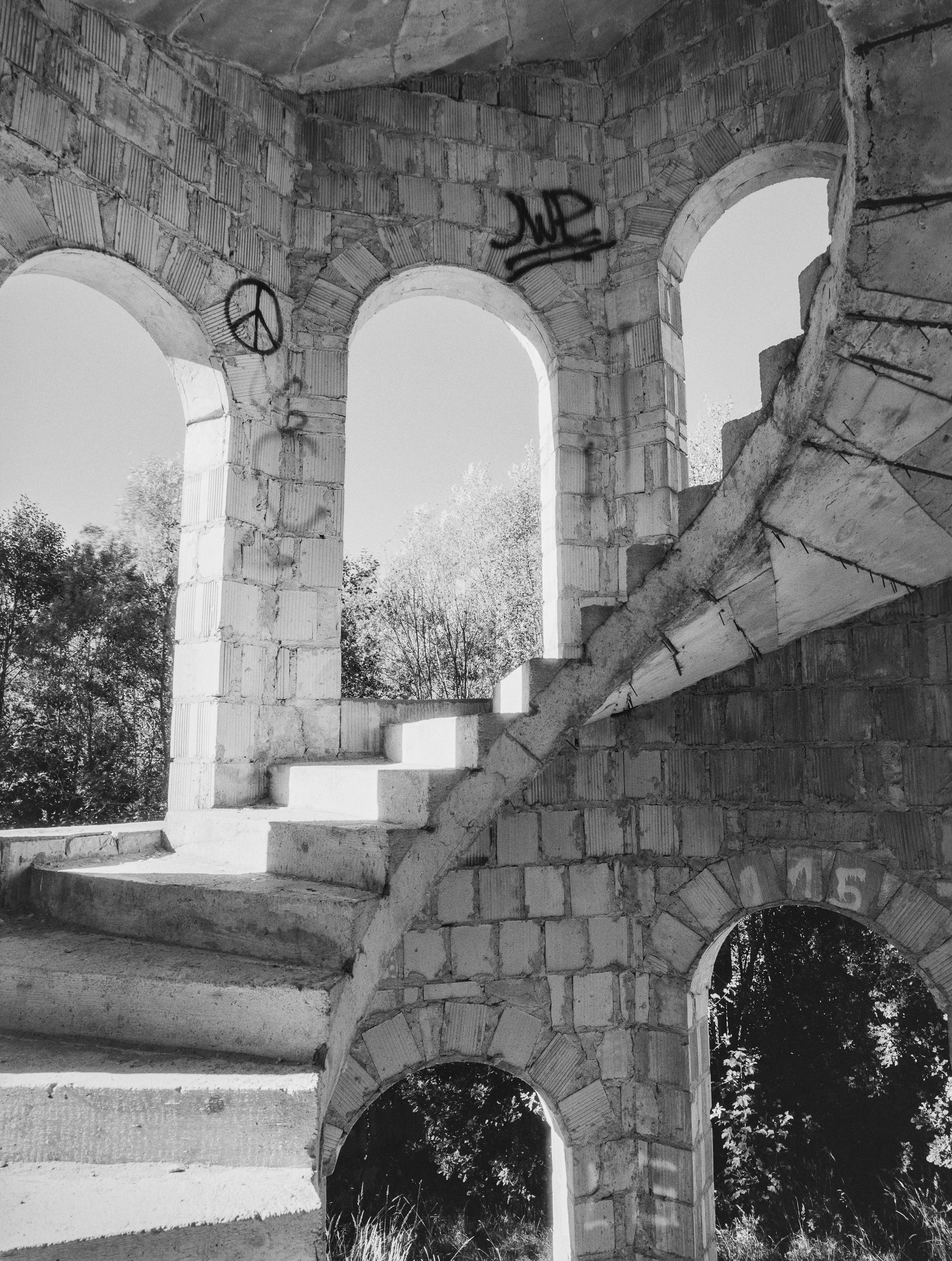 Unfinished staircases rising without destination, defining structure in the absence of function. Photo: Bjørn Joachimsen.